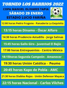 Una de las tradiciones deportivas del verano en Quillota es sin lugar a dudas el Torneo de Los Barrios, el evento más importante del fútbol amateur en la comuna, pero que debido a diversas razones no se ha podido llevar a cabo en los últimos años, pero en este 2022 la Asociación ANFA local apostó por revivir esta competencia con el apoyo la Municipalidad de Quillota a través de Dirección de Deportes, intentando darle un estatus superior, comenzando por denominarlo “Copa Manuel Olivares Tapia”, reuniendo a un total de veinte equipos, quienes representarán a sus respectivas instituciones con todo el ímpetu y ganas de cumplir un buen papel en cancha.