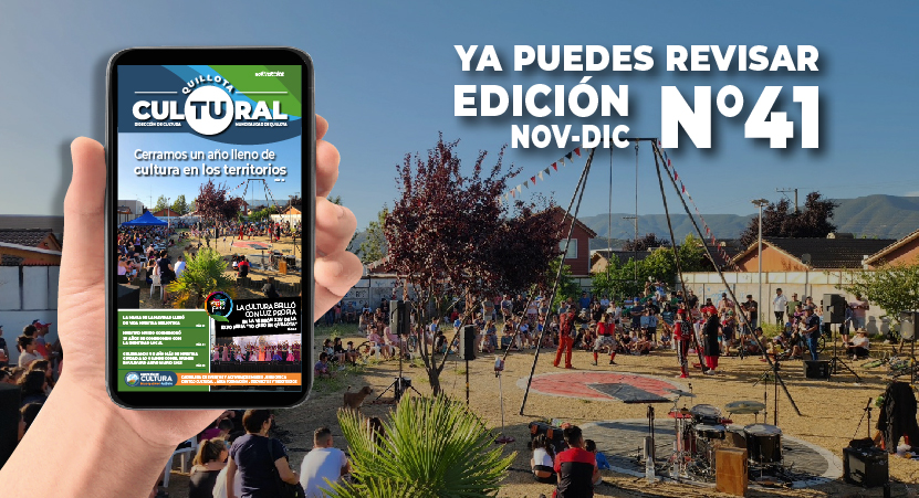 Revista 41° Edición Cerremos un año lleno de cultura en los territorios La Dirección de Cultura de la Municipalidad de Quillota presentó la edición Noviembre–Diciembre 2025 de Quillota Cultural, publicación que cierra un año marcado por una intensa y diversa actividad cultural en la comuna. La revista da cuenta del trabajo desarrollado en bibliotecas, museos, […]