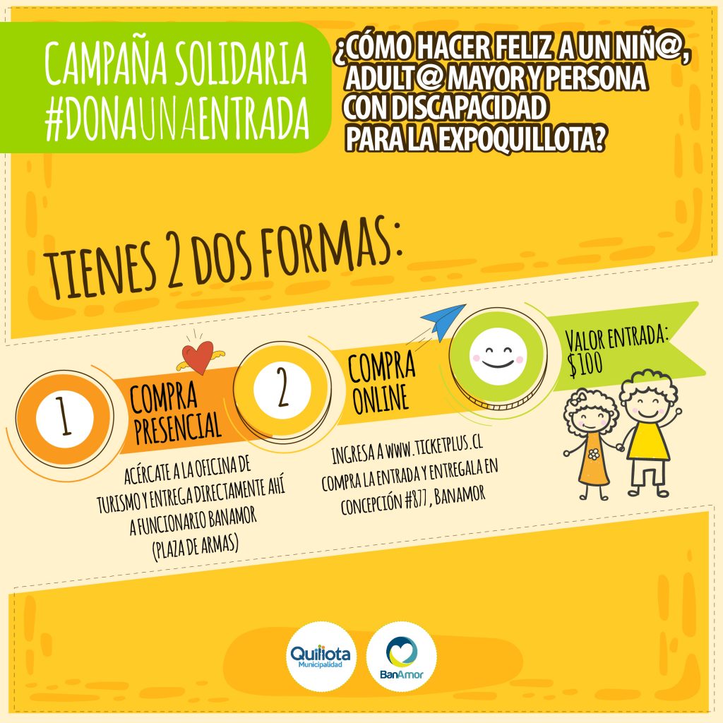 La iniciativa invita a regalar un ticket para que pueda ser entregado a un niño,  niña, adulto mayor o persona en situación de discapacidad de la ciudad y que puedan disfrutar las atracciones y shows de la Expo Feria “Yo Creo en Quillota», que se realizará del 29 de enero al 2 de febrero en el Estadio Bicentenario “Lucio Fariña Fernández”.