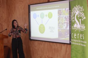 En la ocasión, la Dra. Isabel González, coordinadora científica de centro Ceres, presentó el quehacer institucional del centro regional y puntualizó los resultados obtenidos desde su creación en 2011. En su intervención, la profesional destacó la importancia de generar redes de trabajo conjunta con las y los actores relevantes de la región, facilitar procesos de aprendizaje mediante metodologías participativas horizontales, y promover la investigación e innovación para la generación de conocimiento.