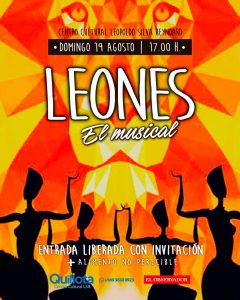 Cerramos la semana con una hermosa obra a cargo del Taller Municipal de Teatro Musical, denominada “Leones, el musical”, trabajo inspirado en la película El Rey León, y que permitirá demostrar todo el esfuerzo y talento local de nuestros artistas tanto en dominio escénico como interpretación vocal.