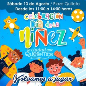 Todo se iniciará en la Plaza de Armas de Quillota el sábado 13 de agosto desde las 11 horas con una jornada en donde habrá muchas sorpresas para los niños y niñas, quienes disfrutarán de variadas actividades, incluyendo la presencia de Dirección de Deportes, que en esta oportunidad estará con los implementos que permitan a los menores practicar básquetbol, tenis de mesa, ajedrez, tenis fútbol, taca taca, todo gratuito. Paralelamente, los profesores Felipe Navia, Nicole Ávila, Fernanda Baeza estarán en San Pedro para activar el Distrito con rutina fit dance, motivando a que los participantes de la Feria de Avenida Dueñas también celebren a los pequeños.