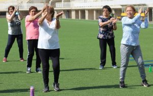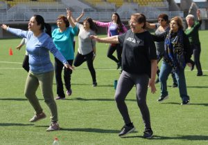 Tras la bienvenida a cada uno de los participantes que se acercaron hasta el recinto, se inició con clase de baile, preparada especialmente para ellos con la música de su época y coreografías que les dan una opción real para mantener su independencia, resaltando lo beneficioso que es para ellos la danza y la felicidad que les genera. A continuación, como una manera de motivarlos en la calurosa mañana, los presentes fueron divididos en cuatro grupos, cada uno de los cuales debió completar el circuito con diferentes ejercicios preparados para ellos, cada uno con sus implementos específicos, pero con el propósito de incentivarlos a mantenerse activos y alegres.