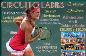 A lo largo de los últimos años una de las situaciones que más se ha repetido en múltiples disciplinas deportivas, tanto a nivel nacional como local, es el hecho que las mujeres pidan ser consideradas en sus competencias y de esta manera demostrar que ellas también pueden jugar, realidad que por ejemplo en el caso del tenis significó que se generara el Circuito Ladies 2022, el que vivirá su segundo torneo en Quillota el sábado 26 y domingo 27 de noviembre, donde todas las inscritas irán en busca de la victoria en cada una de las categorías, contando en las jornadas con visitas ilustres como son Leyla Musalem y Nathalie Rodríguez, chilenas número 1 del mundo.