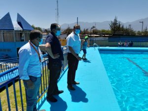 En la ocasión, el jefe comunal comenzó agradeciendo el trabajo realizado por los encargados y funcionarios de la Dirección de Deportes, quienes se coordinaron con la Seremi de Salud para establecer las condiciones en que se puede operar, tras lo cual se puede confirmar que el miércoles 29 de diciembre se abrirá la Piscina Municipal para el público general, destacando temas importantes que deberán considerar los visitantes, especialmente lo referente al aforo, que en esta ocasión depende de la cantidad de baños en el lugar, por lo que la norma señala que podrán acceder un total de 100 varones y 100 damas, para totalizar las 200 personas que pueden ingresar.