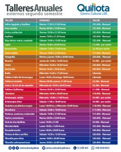 Aún quedan cupos disponibles para participar en los talleres culturales externos, los que son impartidos por profesores y monitores independientes en las instalaciones del Centro Cultural “Leopoldo Silva Reynoard”, de la Municipalidad de Quillota.