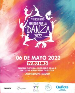 Para este viernes 6 de mayo se realizará el séptimo encuentro “Unidos por la Danza” a las 19:00hrs. en el Teatro Rodolfo Bravo, este espectáculo reunirá presencialmente a distintas agrupaciones como Movedex, Sempiterno, Feeling dance, entre otras. El evento tendrá un costo de entrada de $3.000, y como será en un recinto cerrado se solicitará el pase de movilidad habilitado para poder hacer ingreso.