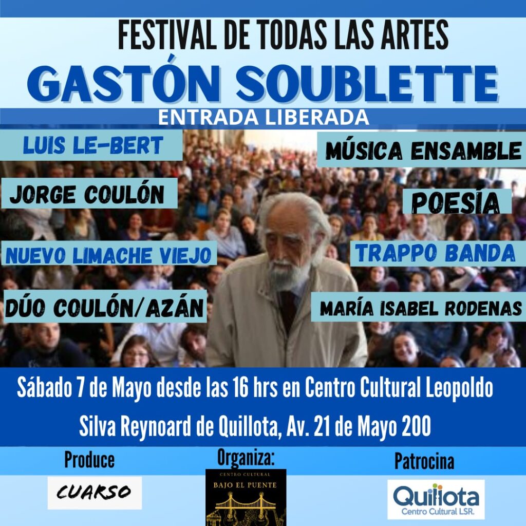 Por la tarde se realizará el “Festival de todas las artes”, instancia donde se realizará un homenaje a Gastón Soublette, quien estará presente durante la actividad; además el evento contará con la participación de Marcelo Coulón y Jorge Coulón, integrantes de “Inti Illimani”; David Azán, director artístico de Patricio Manns; Luis Le-Bert, vocalista de “Santiago del Nuevo Extremo”; “Música Ensamble”, proyecto inclusivo quillotano; “Nuevo Limache Viejo”, banda limachina con 20 años de trayectoria; la “Trappo Banda”, banda porteña; y la cantautora María Isabel Rodenas.