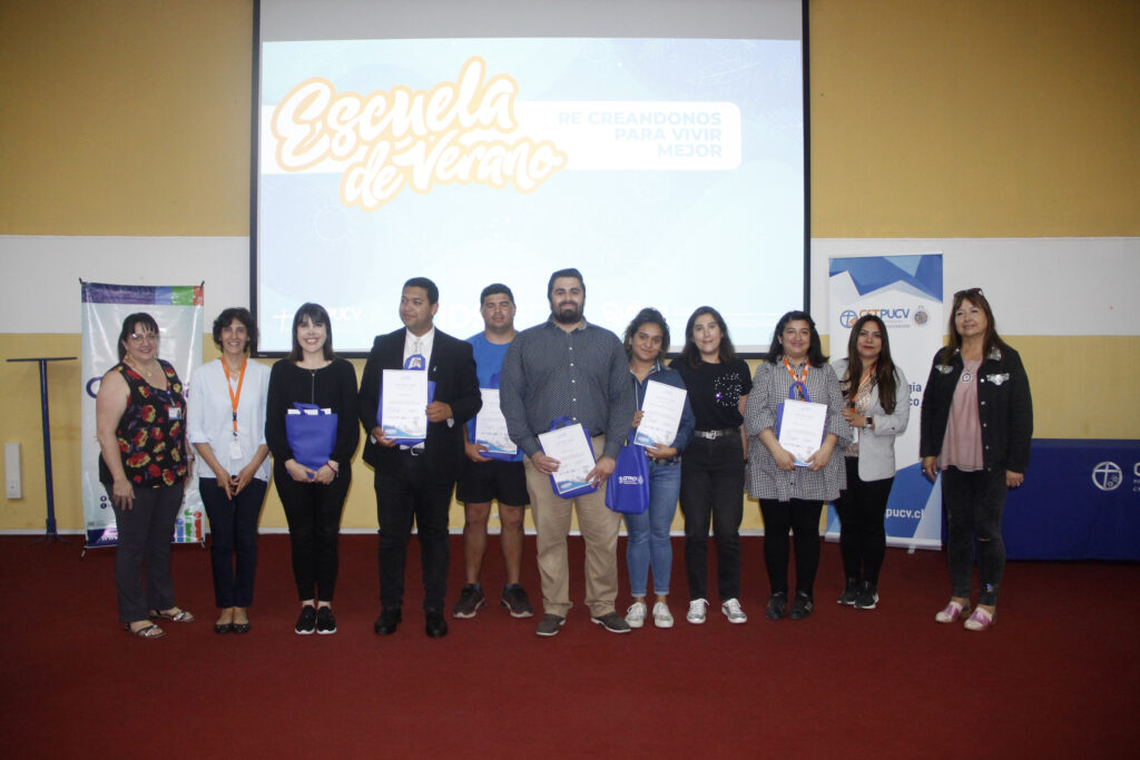 El pasado viernes se realizó la ceremonia de cierre de la Escuela de Verano denominada «Re Creándonos para vivir mejor», donde miembros de los talleres desarrollados entre el 16 y 20 de enero, realizaron una presentación de sus nuevas habilidades frente a las autoridades que asistieron al cierre. El evento se llevó a cabo por primera vez en las dependencias del Centro de Formación Técnica de la PUCV.