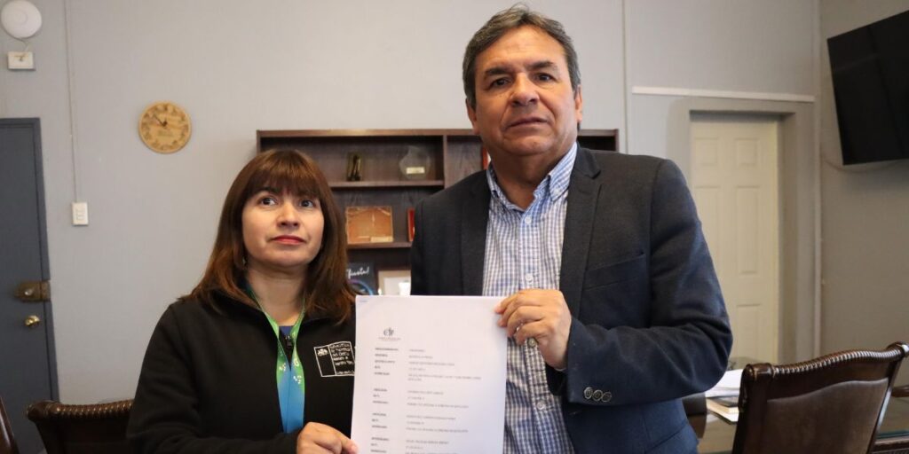 En la imagen que encabeza esta nota se aprecia al alcalde Mella con la acción judicial en sus manos y a Ester Opazo, asistente social de la Unidad de Asesoría y Atención a Víctimas, mientras que en la segunda fotografía se encuentra Hegel Robles, abogado de la Universidad Santo Tomás, Viña del Mar, quien es diplomado en Gestión de Conflictos, Negociación y Mediación, PUCV.