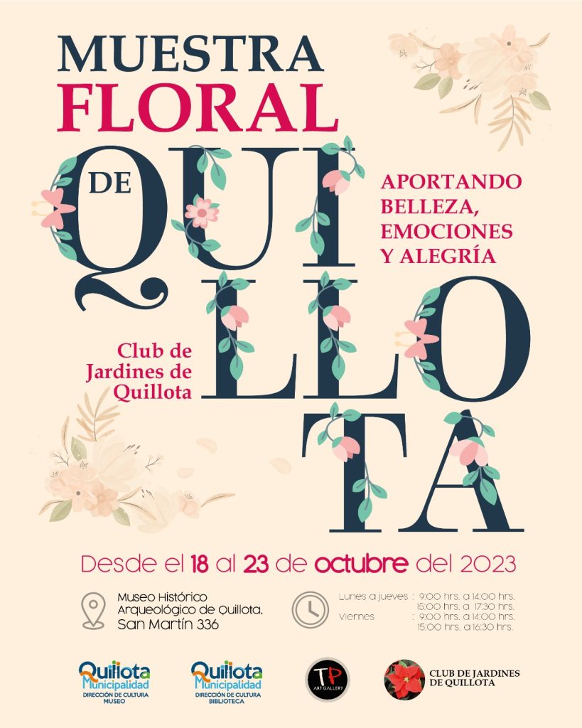 El miércoles 18 de octubre al mediodía en la Casa Colonial se llevó a cabo el lanzamiento de “Muestra Floral: Aportando con belleza, emociones y alegría”, una iniciativa organizada por el “Club de Jardines de Quillota”. A la actividad asistió la alcaldesa (s) Paula Vásquez Henríquez, el director de la Dirección de Cultura Carlos Carmona Bermúdez, el director de la Red de Educación Municipal (RedQ) Luis Salinas Díaz, entre otras autoridades.