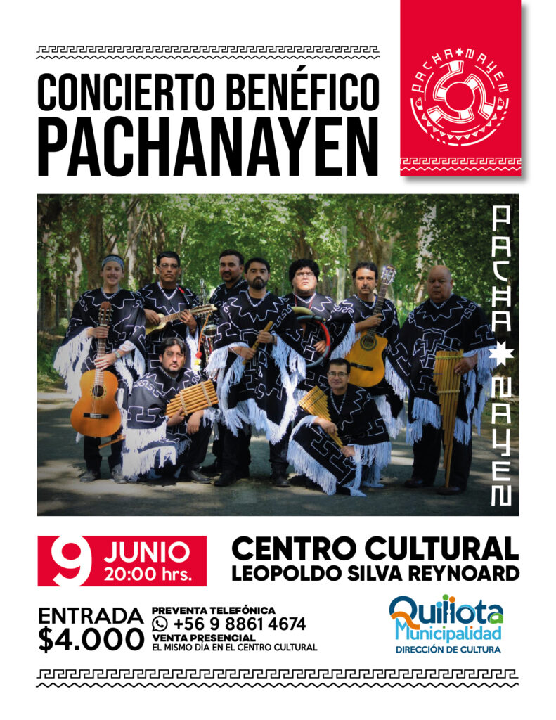 Este viernes 9 de junio la agrupación folclórica Pachanayen llevará a cabo un concierto a beneficio de uno de sus integrantes en el Teatro Rodolfo Bravo del Centro Cultural Municipal Leopoldo Silva Reynoard. El evento hará un recorrido por los 40 años de trayectoria musical de la banda y tendrá una duración de cerca de dos horas.
