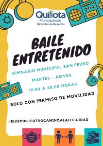 El primero que se inició, gracias a las gestiones de la nueva Delegada Municipal para San Pedro Perla Rodríguez con dirigencia de Junta de Vecinos Enrique Arenas, fue el de actividad física para el adulto mayor en dicha sede social, donde profesora Karen Peña trabaja los lunes, miércoles y viernes de 15 a las 16 horas. Paralelamente, tras coordinación entre Delegación Municipal y Dirección de Deportes se habilitó Gimnasio Municipal para allí realizar las clases de baile entretenido a cargo de monitor Esteban Alfaro, quien está los martes y jueves desde las 19 a 20 horas, respetando en ambos casos los protocolos sanitarios para disminuir los riesgos de contagio.