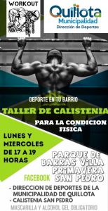 Uno de los objetivos de la gestión del Alcalde Óscar Calderón Sánchez es el potenciar la actividad deportiva en la ciudad, ello mediante el ejecutar en diferentes barrios y sectores de Quillota una serie de iniciativas, para así permitirle a los vecinos el motivarse con la vida sana, contando con una alternativa de participación que para ellos esté mucho más cercana, siendo en esta primera etapa el Distrito de San Pedro donde se partió con más fuerza gracias al compromiso de sus habitantes, quienes han trabajado en conjunto con Delegación Municipal y la Dirección de Deportes para implementar tres talleres, pero planificando sumar otros para el futuro próximo.