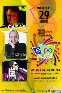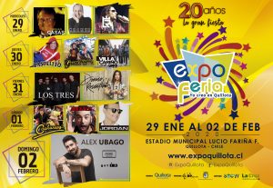 La producción de la Expo Feria Yo Creo en Quillota confirmó la parrilla de artistas, luego de que la fiesta local fuera aplazada de su fecha original (31 de octubre al 3 de noviembre), por respeto al acontecer nacional y las prioridades del momento, dando pie a que esta versión se consolide como la gran fiesta del verano en la comuna.