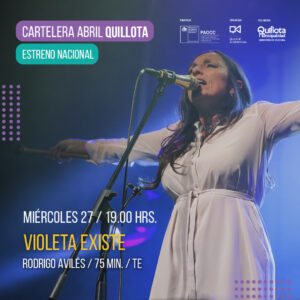 El documental “Violeta existe” del director Rodrigo Avilés será estrenado gratuitamente este miércoles 27 de abril a las 19:00 horas, en el Teatro Rodolfo Bravo del Centro Cultural Leopoldo Silva Reynoard. La pieza audiovisual llega gracias al “Centro Cultural Quilpué Audiovisual”, y se presentará en Villa Alemana y Quilpué de manera simultánea.
